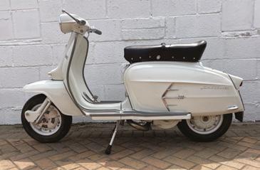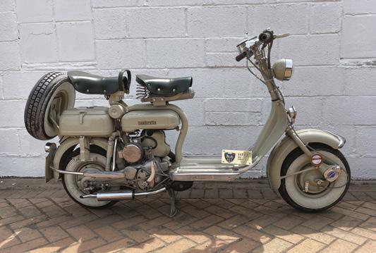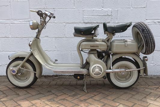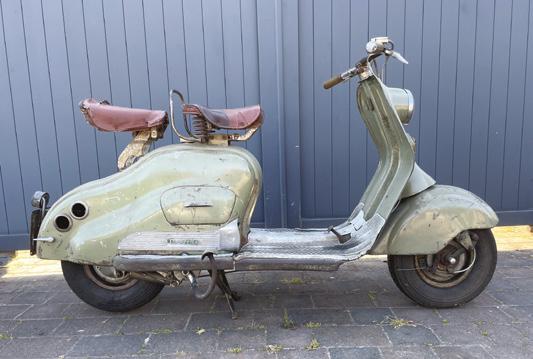In 1952 production started of French built LDs and these had a variety of differences from the Italian models. These changes were mainly due to French regulations. The choke, fuel filler and fuel taps were moved to arguably a more convenient location (something Innocenti later copies on subsequent Italian models). Societe Industrielle de Troyes produced almost 200,000 scooters and 10,000 three-wheelers in its scooter production time. This example is has been restored some time ago in an attractive Baby Blue colour. It is complete but needs some attention. The scooter has not been used for some time. Many of the important parts including original lights, speedometer, frame plate, front badge are present. There are also, nowadays, a number of performance kits for LD’s which include new carburettors and it could be possible that this example is a good candidate for customisation. It could also be displayed as a static ‘objet d’art’. Our vendor is selling only due to ill health. It is offered with ‘no reserve’.