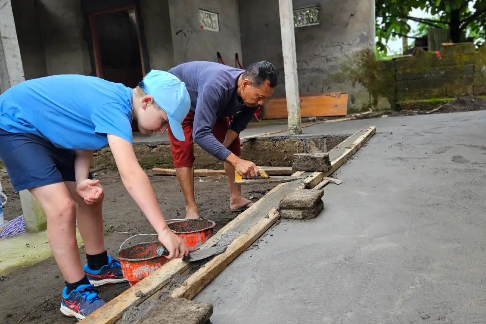 TheHandsUpHolidaysteamarrangedforustoworkwithlocalbuilders andMade’sfamilytoconstructabathroomthatwouldprovidehimwith thespaceandaccessibilityheneeded.Overthenextfewdays,ourfamily workedalongsidetheteam,mixingcement,layingtiles,andbuilding rampsthatwouldallowMadetomovefreely