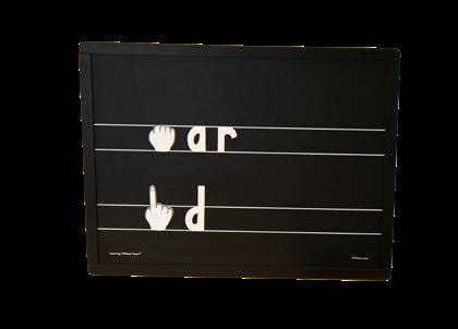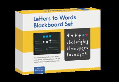 Use the Letters to Words Blackboard Set for fun, hands-on literacy learning. Includes: Magnetic Blackboard, 52 magnetic lowercase letters, 22 magnetic hands, 7 magnetic sound tokens, and 5 magnetic hearts.