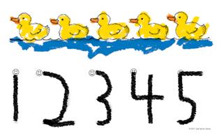 Children develop number formation skills with songs and rhymes. 10 booklets in the set, one booklet for each number 1–10, each with 14 pages.