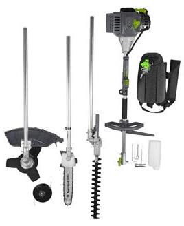 2-taktiline mootor, maks. 9500p/min. Rohulõikur ja trimmipea, hekilõikur ja kettsaag Oregon keti ja latiga. Kaasas traksid. 18001