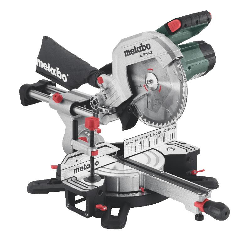Nurgasaag KGS 254M 1800W, 254x30mm ketas, 4500p/min. Laser ja integreeritud LED töökoha valgustus. Otselõige 90°/90° 305x92mm ja 45°/45° 205x47mm 58-11284