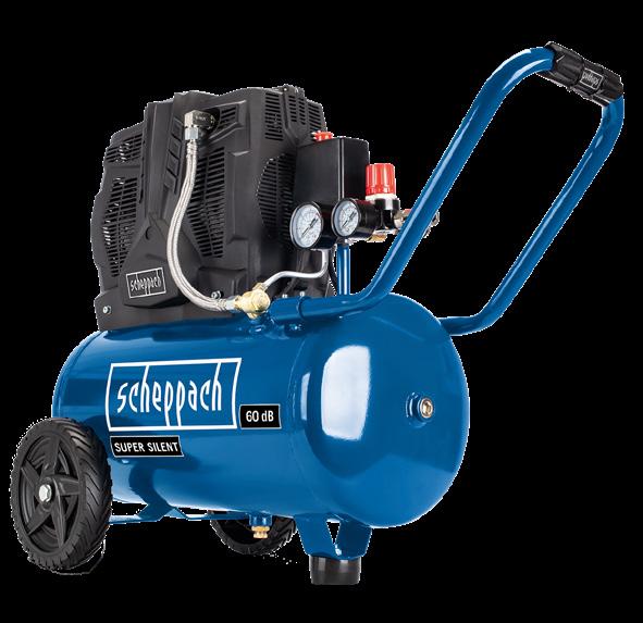 Vaikne õlivaba kompressor HC25Si 1100W, paagi maht 24L, tootlikkus 230L/min, 8 bar, 2 väljundit ja manomeetrit, suured rattad. Väga vaikne: 60 dB(A), nagu inimese jutt! 58-12912