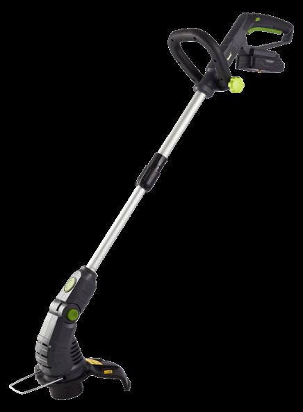 Akuga murutrimmer 20V 20V 2,0Ah Li-Ion aku LED indikaatoriga,1h laadija,tööaeg laetud akuga ca. 25-35min, lõike Ø 250mm, tamiil Ø1,6mm x 6m. Teleskoopiline vars 98–123cm, trimmipea seatav ~ 90° - 4 astet. 18120