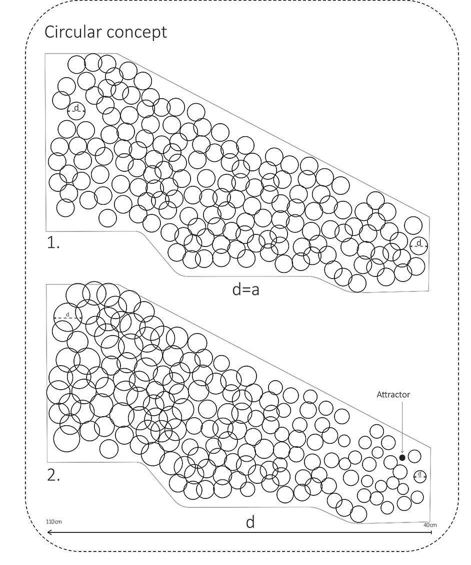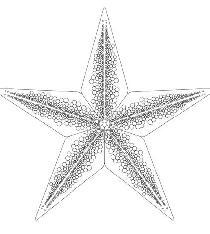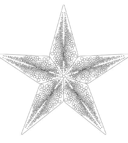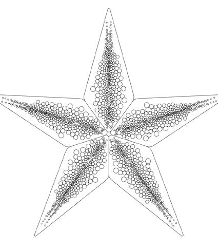 The Design process evolved from a pattern studey for a 2D model fabrication and a 3D form finding in the second step. The 2D study included investigating different parameters and their variation in the starfish pattern, the spines, and different elements in the star geometry like the number of arms and their proportions.