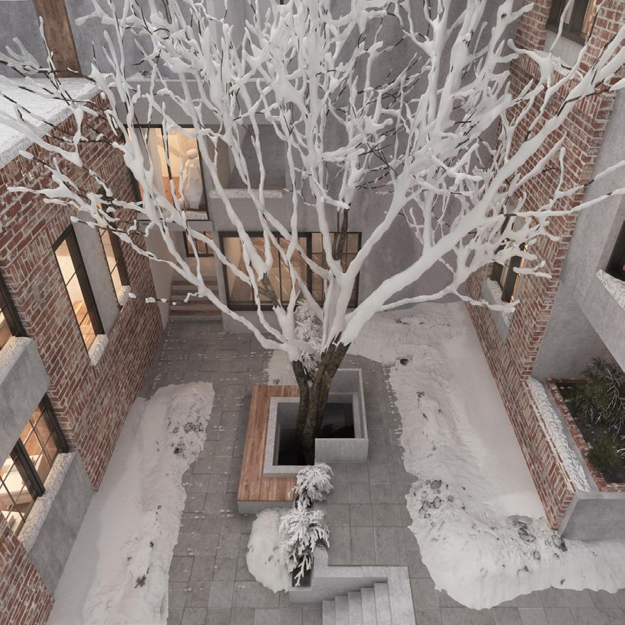Two central courtyard as both iranian traditional archetype and a model in sustainable design has been placed.