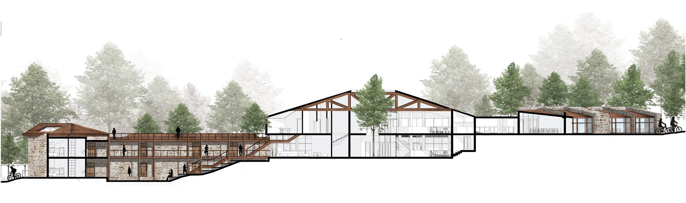 To preserve connection between different spaces and creating a path around site to enhance the connection between individuals and nature, two bridge are connecting the massings