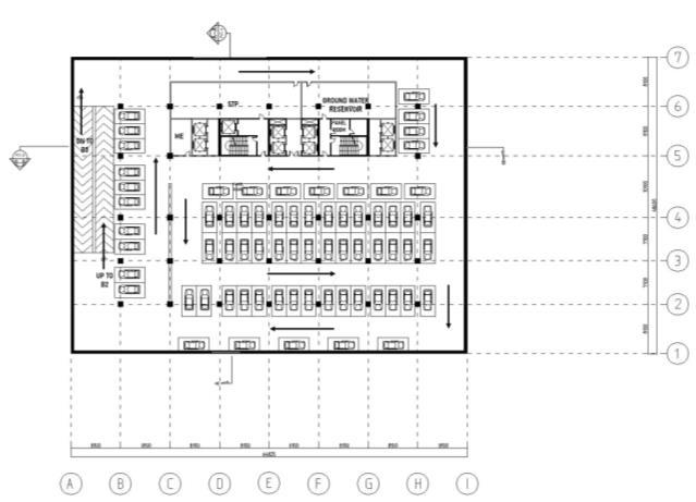 Structural grid (y-axis rhythm) = 10 – 8.1 – 8.8 – 8.1 – 8.1 – 8 – 8.1 – 8.1