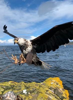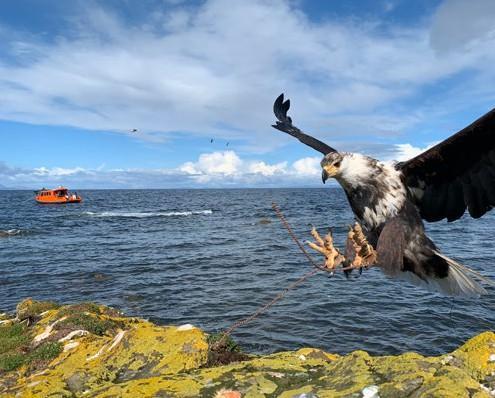 The Glenapp Eagle Fishing experience can only be described as unique. This once-in-a-life time experience is not available anywhere else in the world. To start this amazing day, you will get acquainted with the Eagle, and fly a few other raptors from the Castle grounds before heading to Girvan where you will embark the Glenapp Castle Boat and enjoyed a spirited ride along the rugged Ayrshire coast before anchoring below the cliffs at Culzean Castle. You will be joined by our expert Falconers and ‘Ripley’, the famous African Sea Eagle, and will experience an epic demonstration of an eagles power and agility as she flies between the shoreline and the vessel, taking food rewards from the water directly beside the Boat. Whether you simply watch in awe, or take photographs and videos for your personal ‘insta’ moments, the memory of this experience will last forever and the spectacle will never again be so close to you.