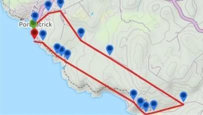 Route Description: Stage 1: From the car park at the southern end of Ballantrae head north along the sandy beach to reach the port until larger modern fishing boats outgrow it and herring stocks declined. Head down a small slip and onto the beach - the firm sand makes this an easy three kilometres with Ailsa Craig a constant companion on the horizon as the waypoint of Bennane Head draws nearer.