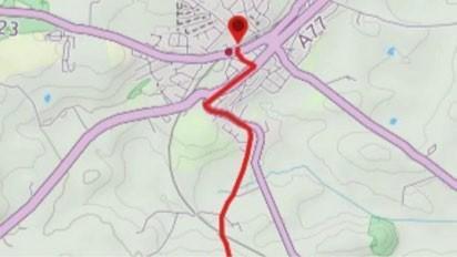 Stage 2: Follow the farm track past a layby to a gate leading to a further track heading uphill and parallel to the A77 below. Follow the easy track.