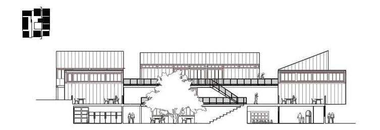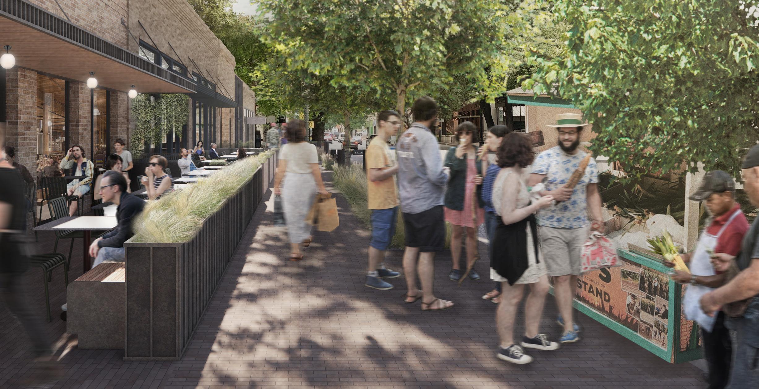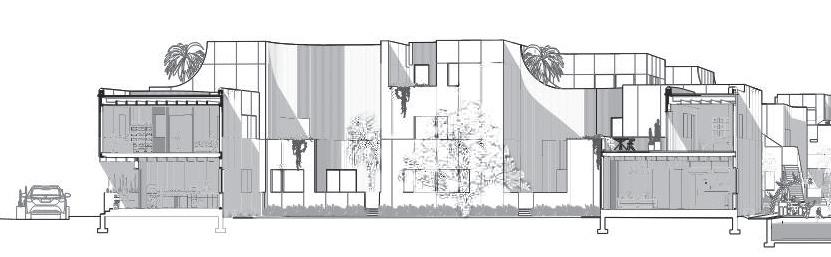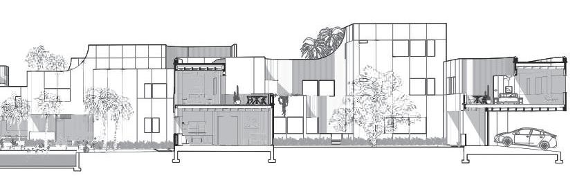 Parkplex bridges across three sites, creating one cohesive backyard. A village of ADU’s, with a variety of smaller spaces throughout the site for small groups to enjoy.