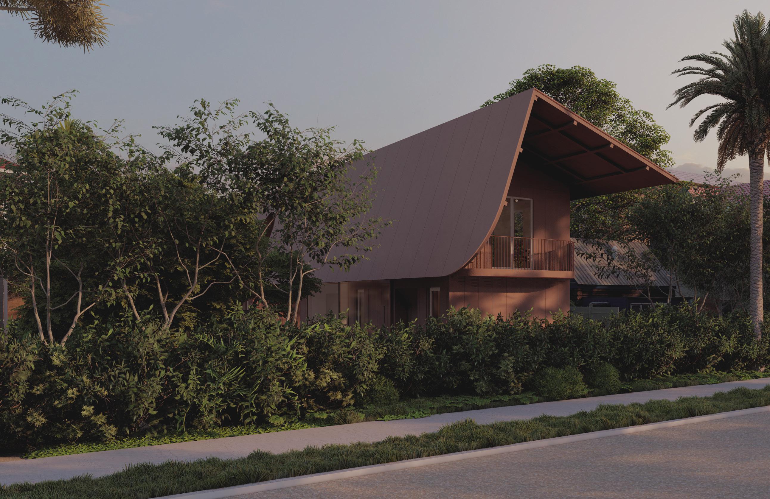 The Lau’eki Residence is a 12,000sf home on The Big Island of Hawaii. The clients, a family of four, wanted a home that could grow with their family, as they start to have grandchildren. Three identical ‘guest hales’ neighbor the main hale, perfect for their children’s growing families when they visit. Social spaces—like the family room, gym, and bar—are shared by the family in the main hale.