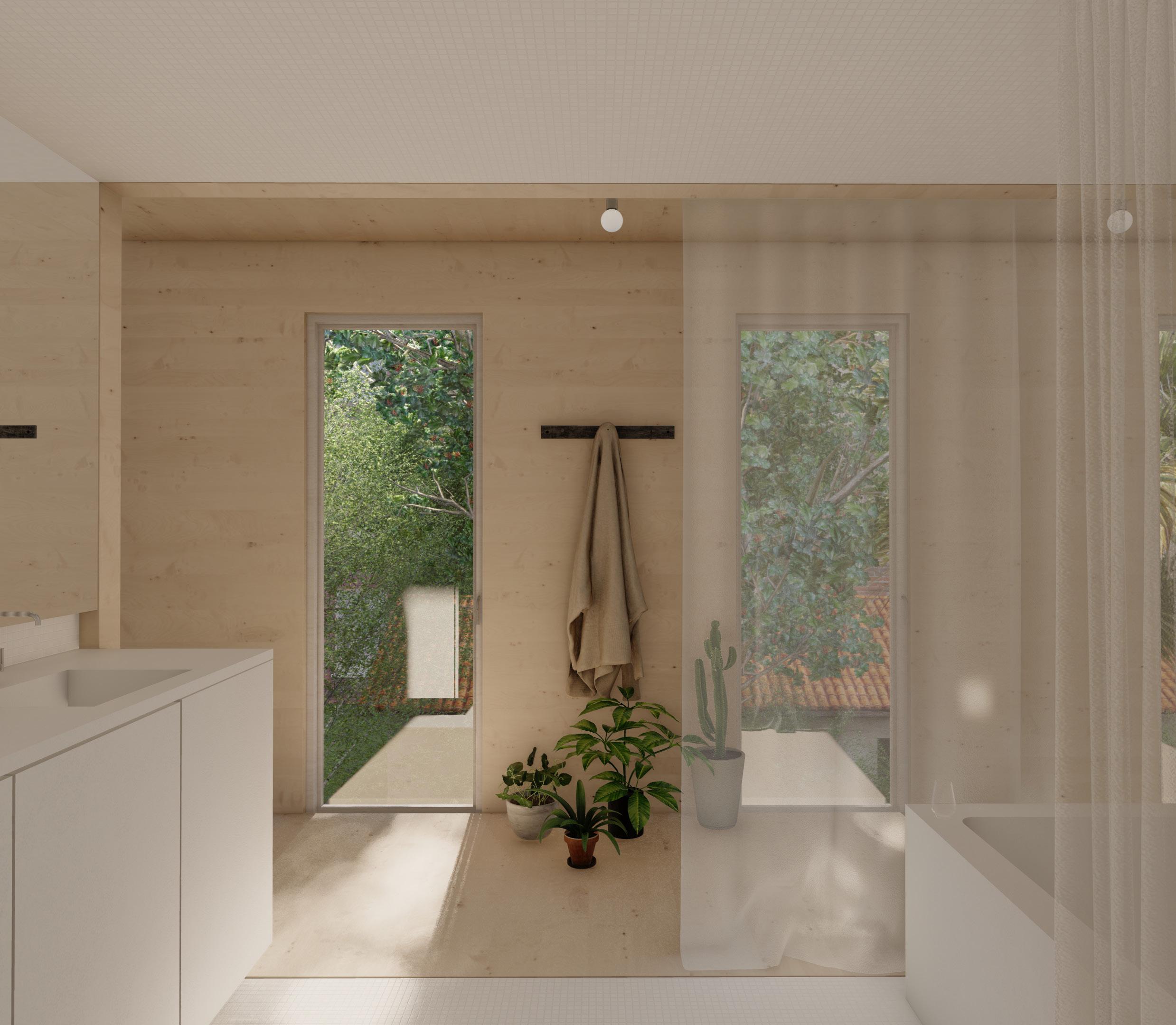 My proudest moment on this project was in the summer of 2022. Our client came to us with the realization that her backyard felt like her ex-husband’s backyard, not hers. She knew she wanted something different, but didn’t know how. Previously, Parkplex had been strictly interiors, keeping the tired bungalow exterior intact. I designed a new iteration of the project, modernizing the backyard structures, so that the backyard would feel entirely new and cohesive, while the three primary houses look completely different. We proposed this new design to the client and she loved it. Construction begins in June, with a target of completion a year out.