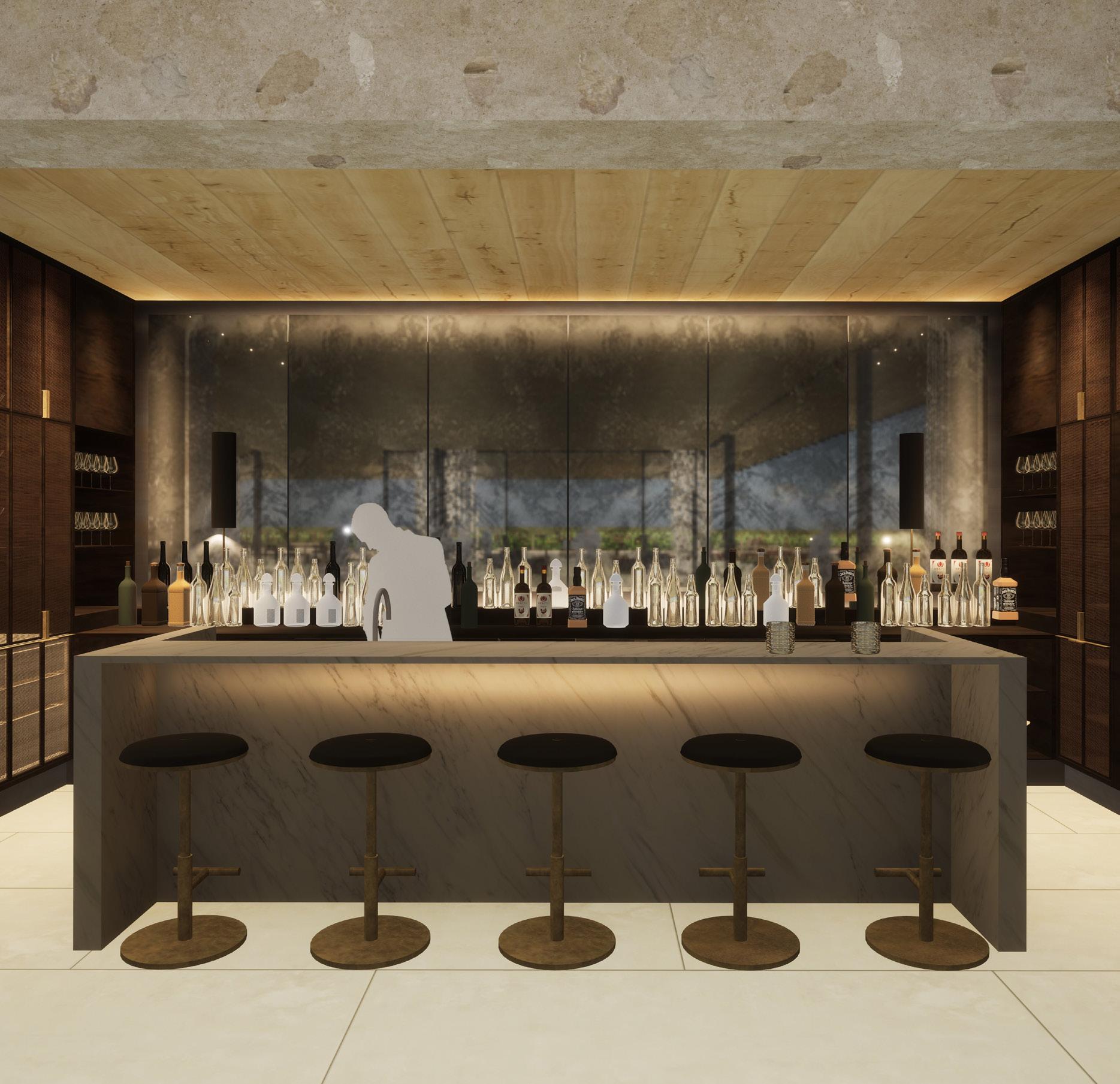 2023 Walker Warner Architects Design Development Napa, CA Outdoor Bar Main House Bar - North Interior Elevation Main House Bar - West Interior Elevation Outdoor Bar - East Interior Elevation Outdoor Bar - South Interior Elevation