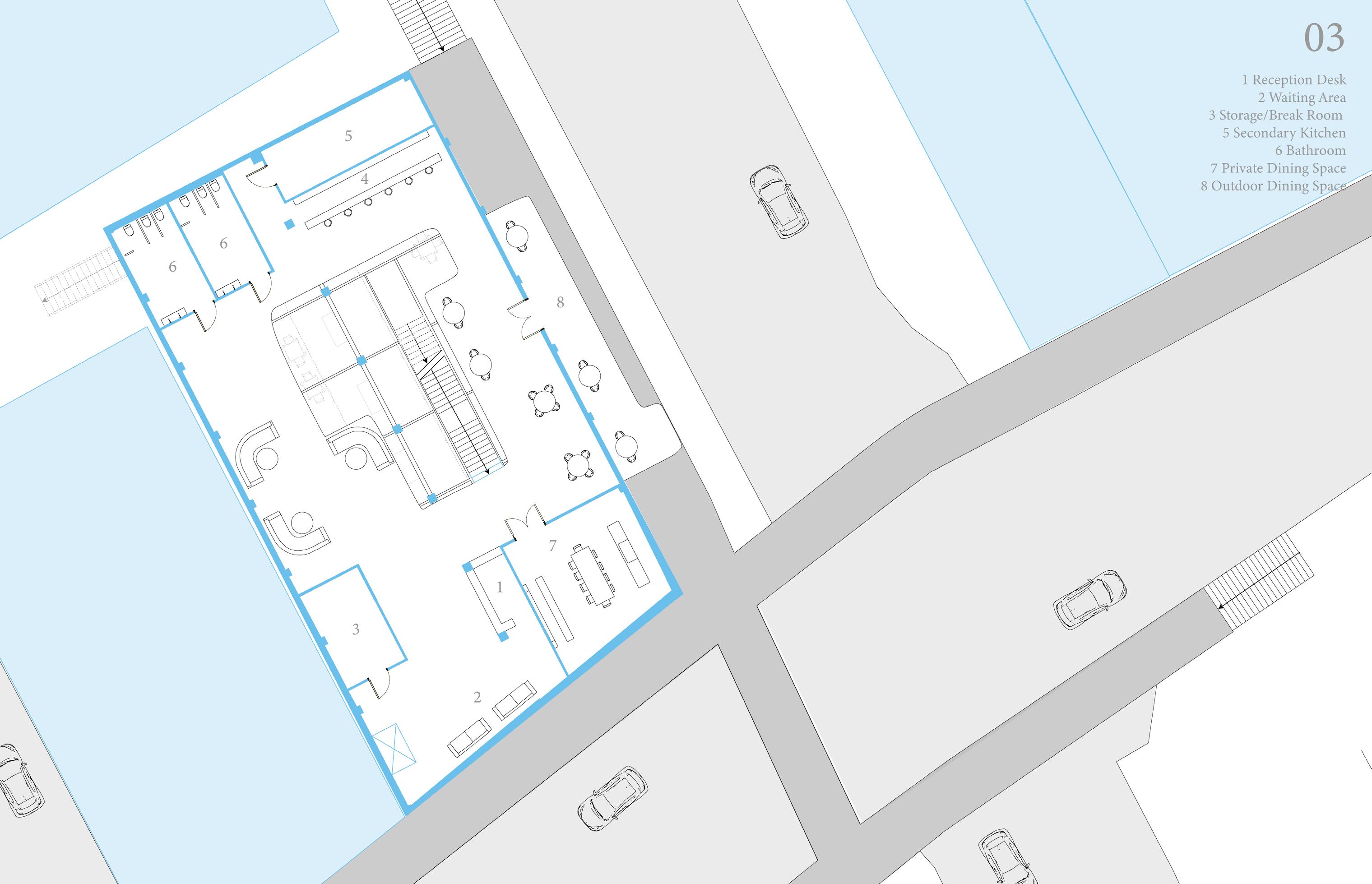This project explores the role of architecture in addressing the town’s lack of spaces for interaction and connection. The work began with the development of a comprehensive research document that examined Morristown’s history, cultural context, and existing urban conditions, identifying the absence of communal gathering places as a central issue. From this research, a proposal was formed to transform an existing building into a new dining experience that both preserves and reinterprets the town’s character. By exposing the building’s interior columns, the design reveals layers of Morristown’s history while simultaneously creating a setting for shared meals, conversations, and community activities. The project positions dining not only as a functional program but also as a catalyst for civic engagement, bridging the gap between past and present. The project emphasizes the importance of grounding proposals in research while demonstrating how design can reclaim underutilized spaces and foster meaningful human connections.