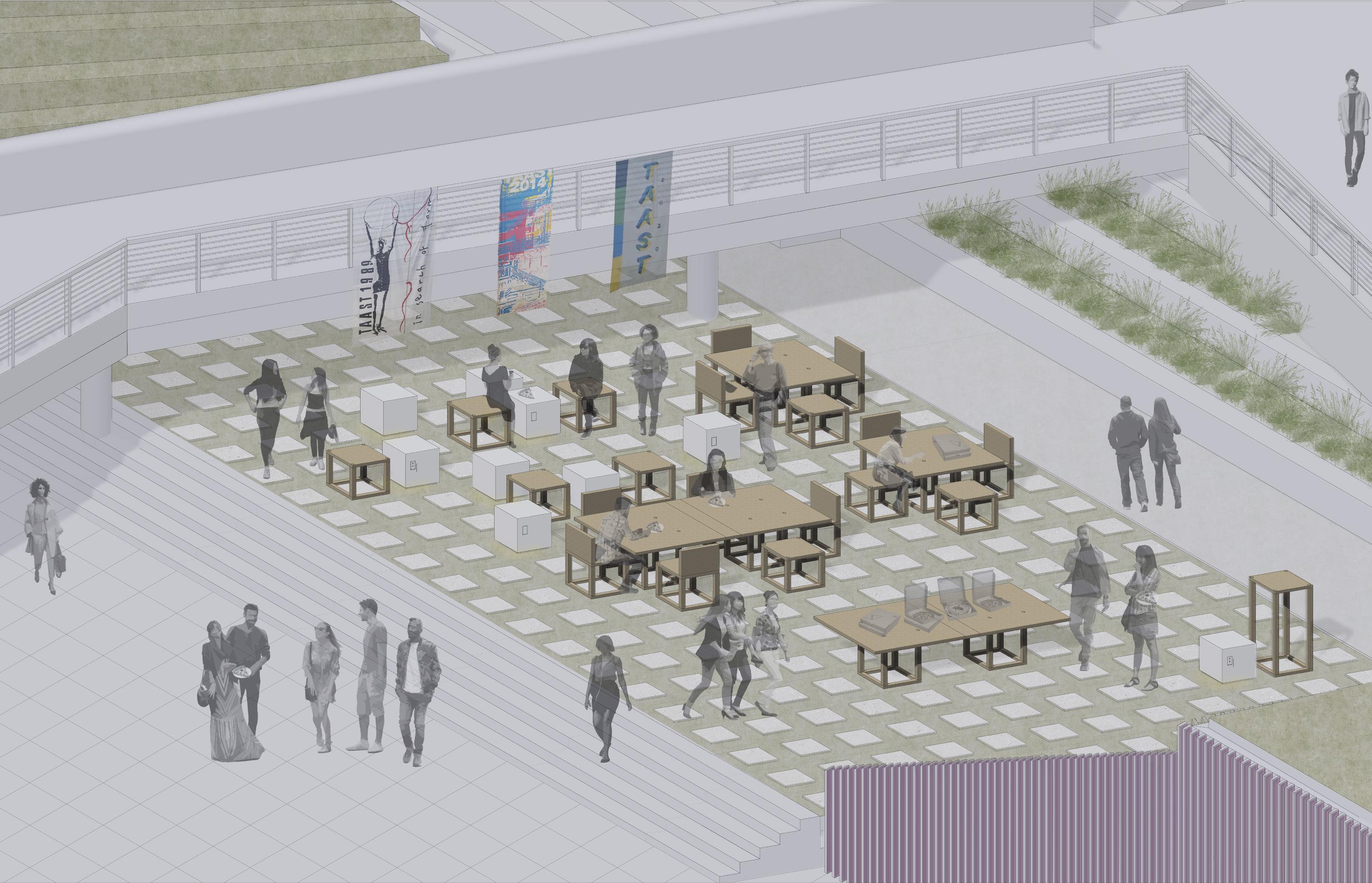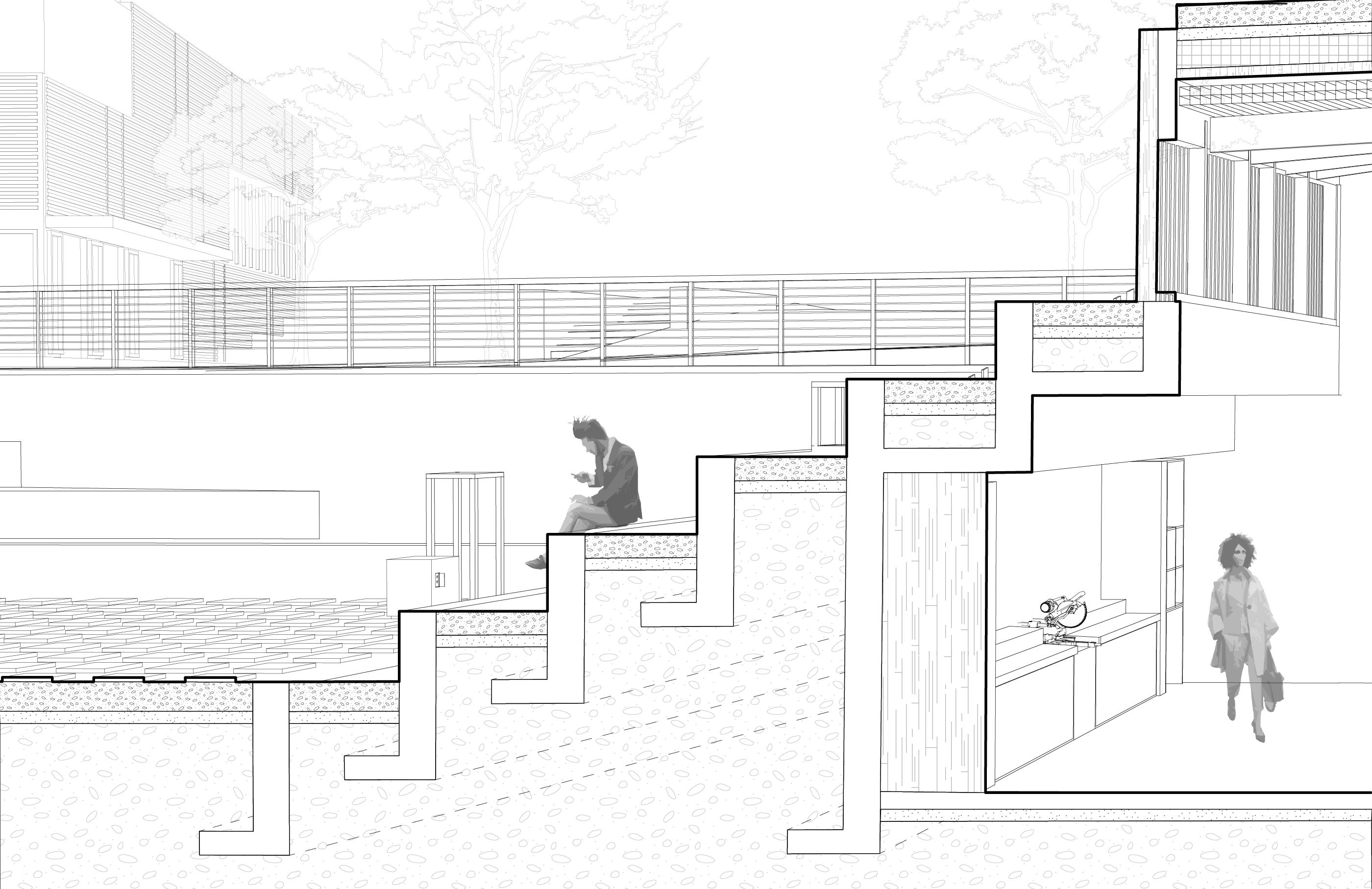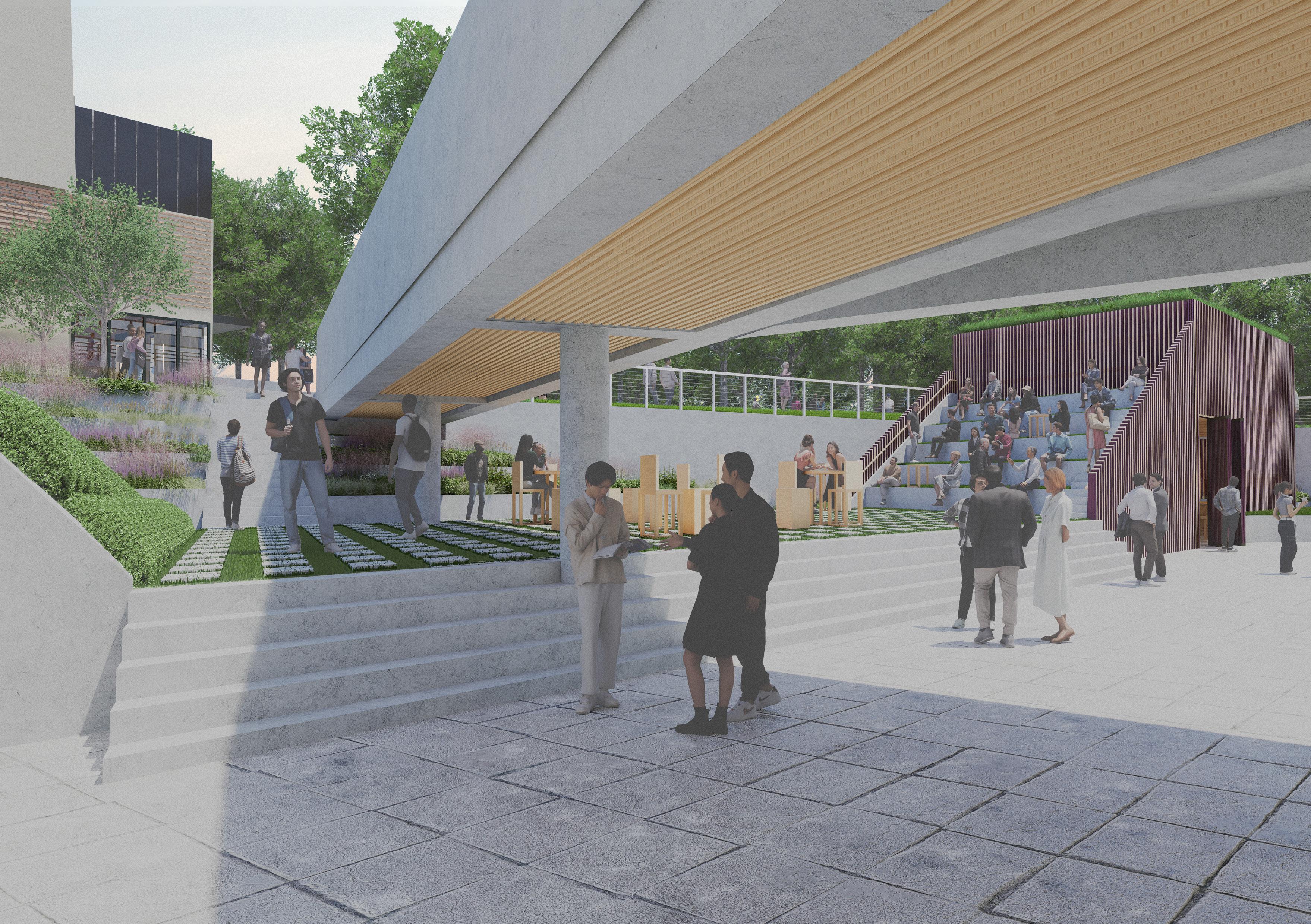 Distinct zones and gathering spaces are distributed throughout the site to foster interaction among students, faculty, and the public, reclaiming underused territory for meaningful engagement and strengthening connections across disciplines.