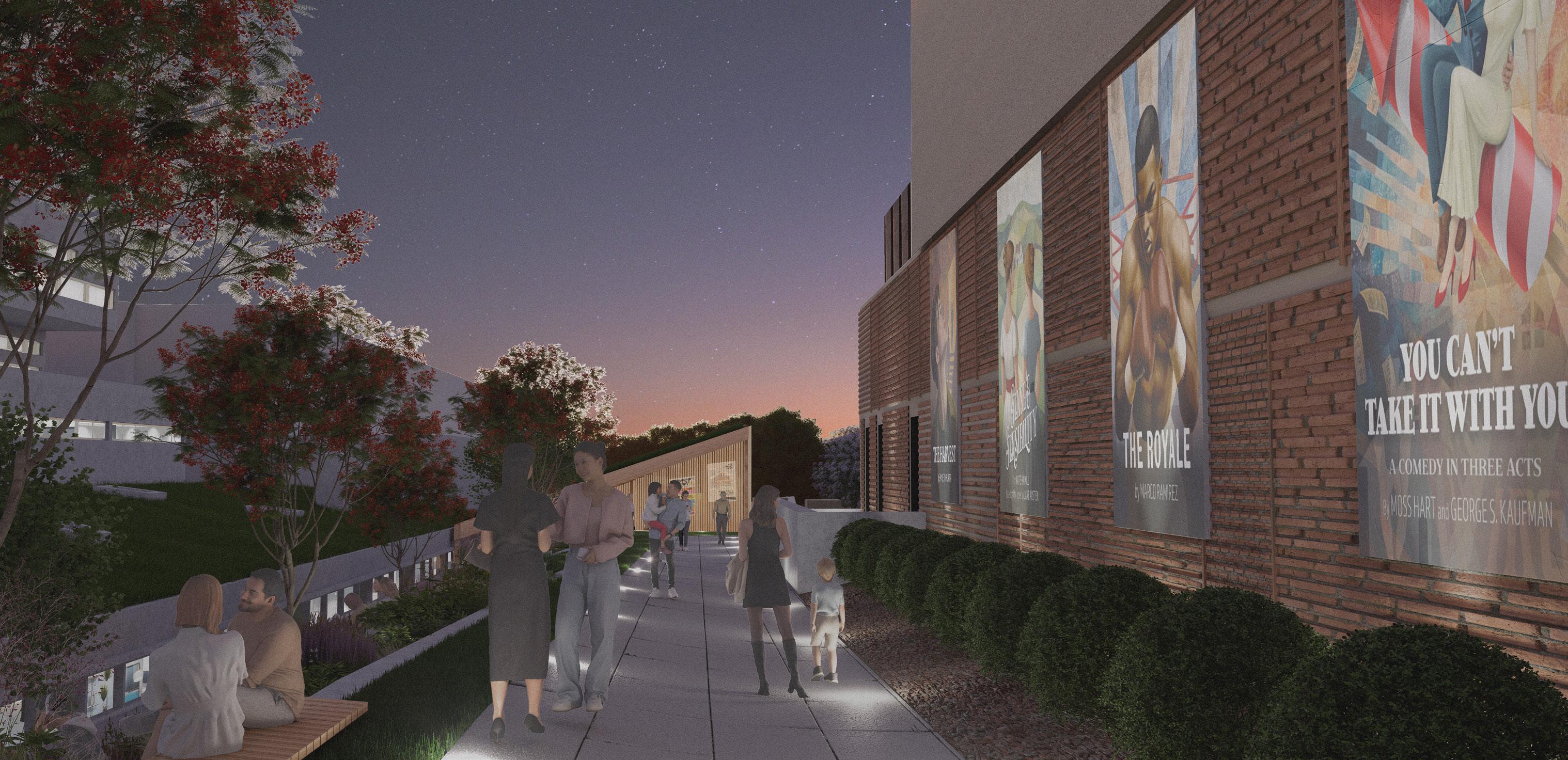 This project transforms the underutilized space between the Art + Architecture Building and the Jenny Boyd Carousel Theatre Extension into an activated Arts Quad that supports circulation, collaboration, and public use. A network of paths, regulating lines, and pavilions connects key campus corridors while creating opportunities for exhibitions, workshops, and reviews.