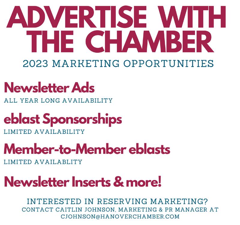 Chamber Connection is a monthly publication of the Hanover Area Chamber of Commerce. For deadline information, please contact our Marketing & PR Manager at cjohnson@hanoverchamber.com.
