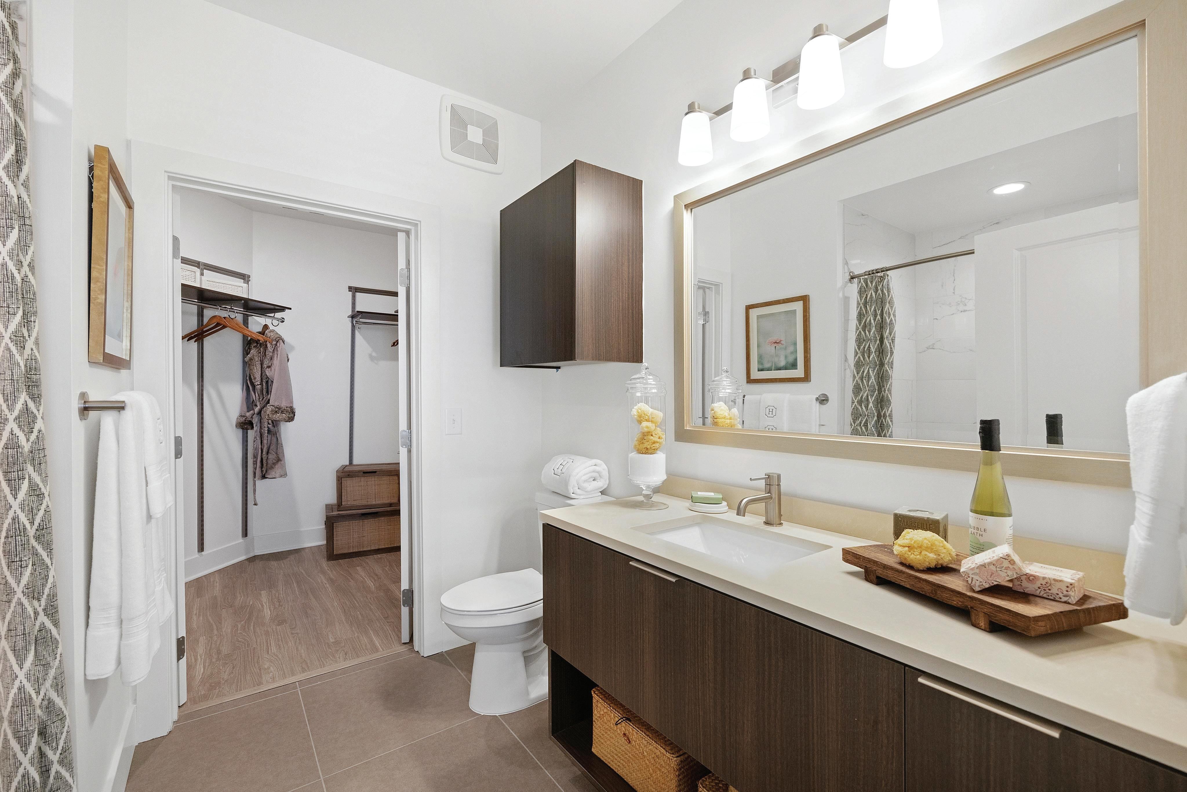 • Dual-vanit y counter tops, walk-in showers, free -standing soaking tubs and linen closets*