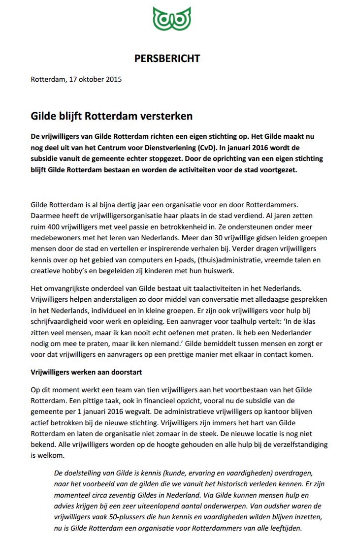 omdat het imago van de Gilde organi satie sterker wordt door de maatschap pelijke bijdrage aan het voorkomen van schooluitval. En mede doordat Gilden versterkt worden met zeer deskundige vrijwilligers. In het najaar van 2016 staat de nieuwe coördinatorenbijeen komst op het programma.