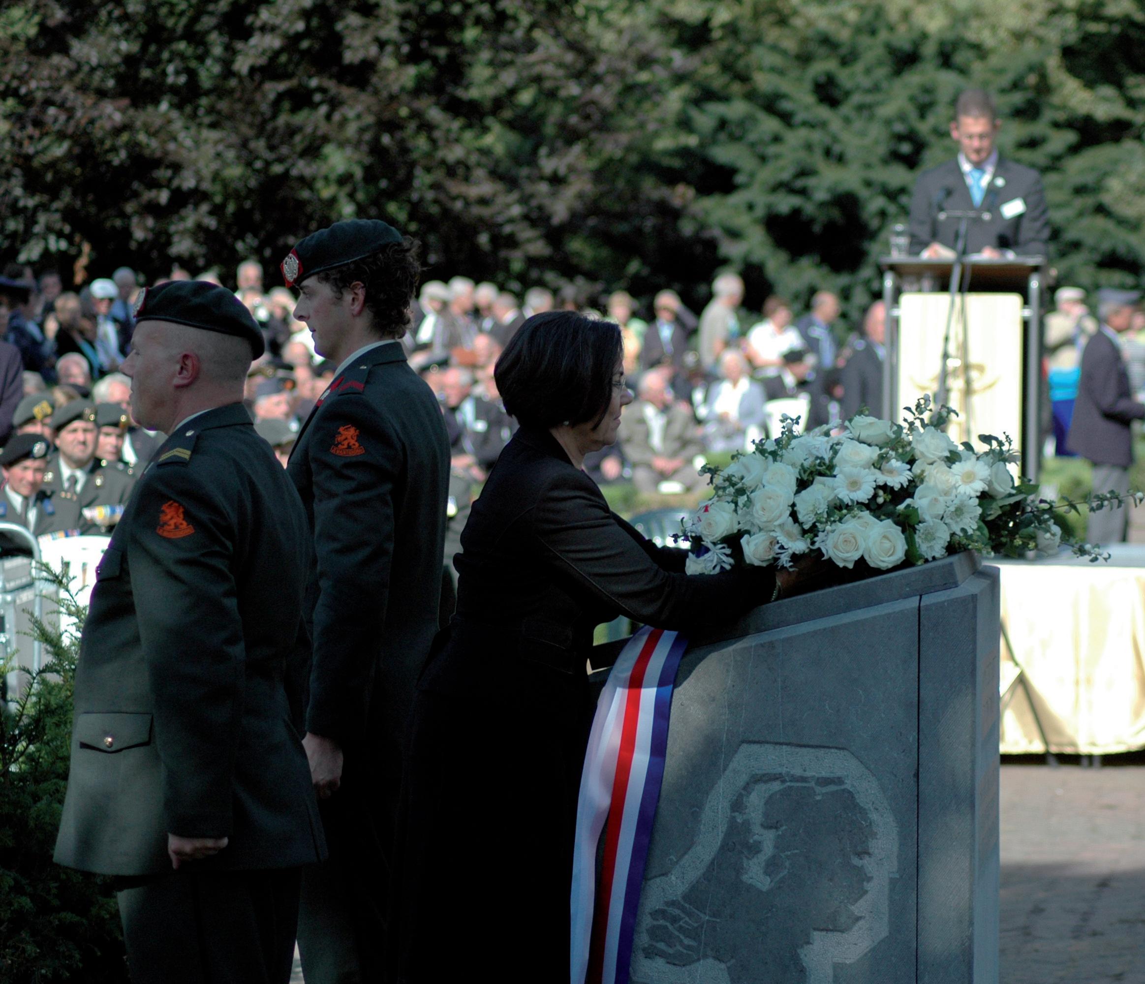 Aandacht en respect voor die militairen en burgers zijn vooral als het gaat om de strijd in Indië pas erg laat ge komen. Ook van de zijde van het Parlement. Vanuit dat besef zal ik nu een krans leggen bij het monument, maar ook bloemen bij de gedenksteen van de burgers.