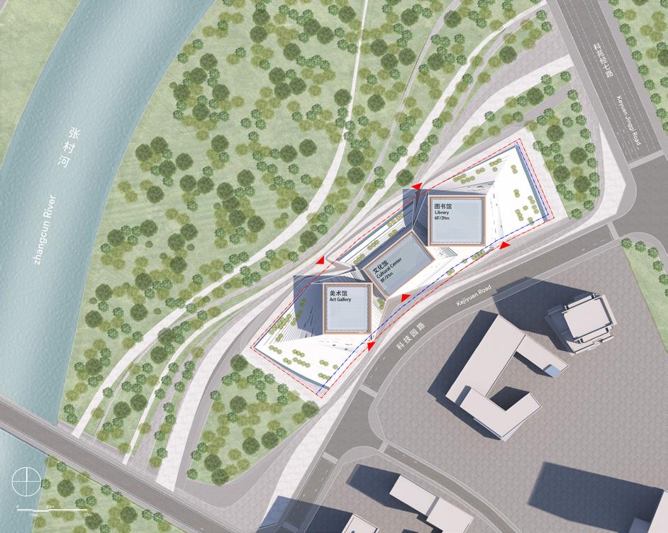 A competition I participated during the internship at BIAD. The design concept for the Laoshan Cultural Center takes inspiration from the surrounding topography and integration of “Shan Shui” characteristics and spatial elements. In combination with a vibrant artistic, and creative environment the design seeks to maximizes the site’s strategic geographical location as an innovation hub. With careful consideration of the local climate, the buildings are carved and shaped to allow for a seamless flow of natural landscapes and act as a continuation of the cityscape. The vision of the building’s silhouette is iconic and contextual.