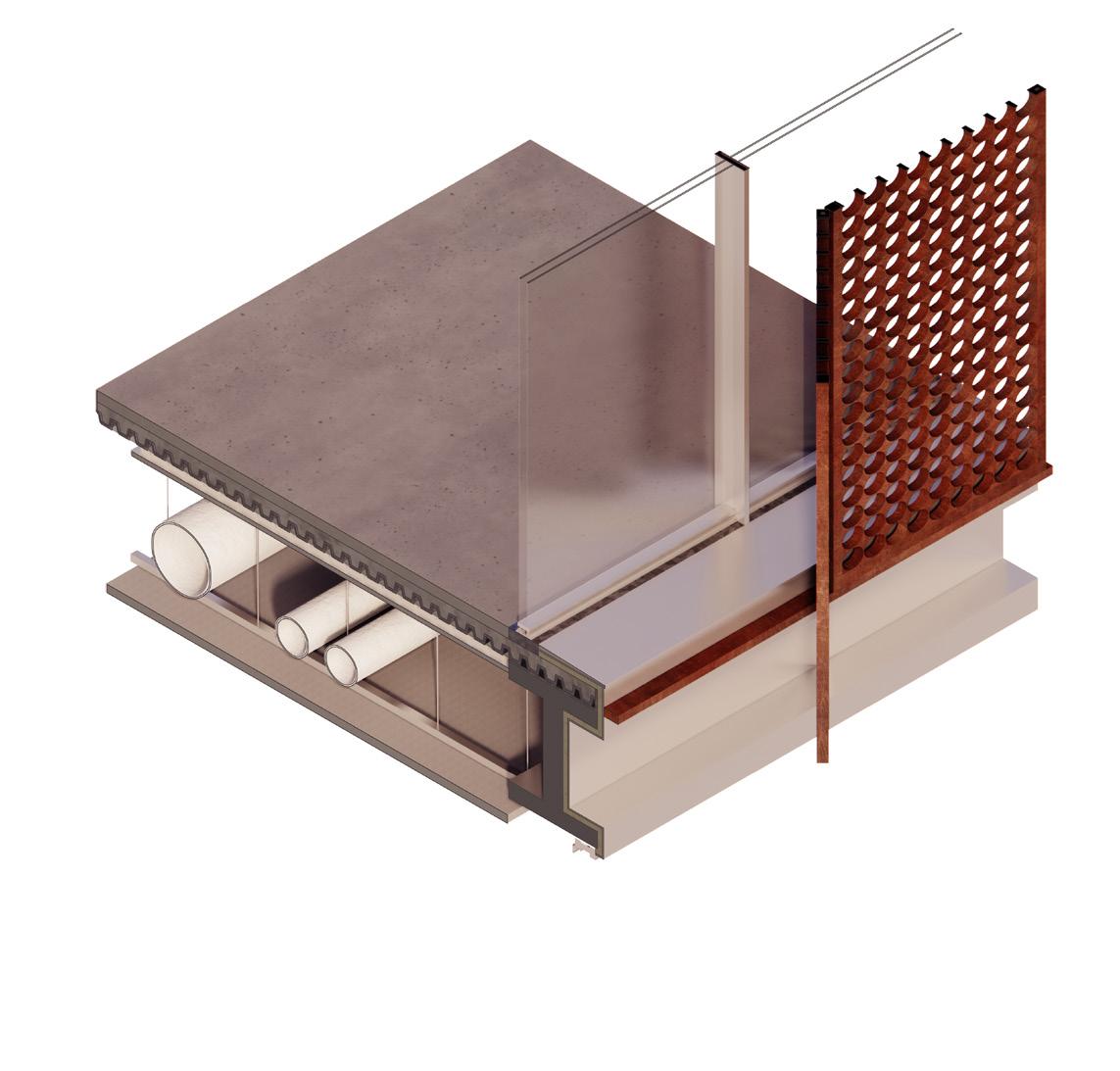 - 4 layers 6’’x 2’’ Glulam Lattice Wall