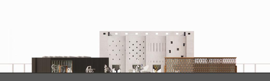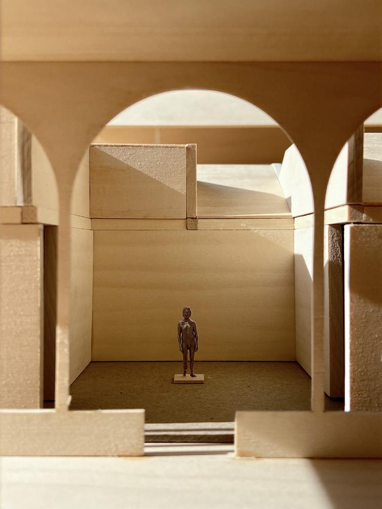 This temporary exhibition pavilion occupies the courtyard of Museo Novecento---the old Hospital of San Paolo, located in Florence’s Piazza of Santa Maria Novella. The new addition as a contemporary design must measure itself against the weight of historic patrimony. The pavilion will be used to hold a temporary art exhibition during spring and early summer. Only the natural light will be applied in the pavilion. The art exhibition will present a series of contemporary artworks including paintings, sculptures, and film stills, each artwork’s position were designed in this project.