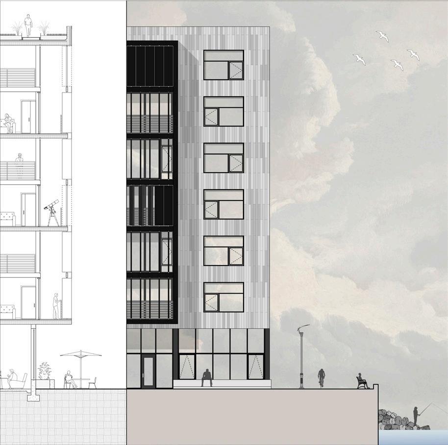 This Multi-family waterfront housing at former Dartmouth Marine Slipway provides 27 units in total, including 12 three-bedroom units, 13 two-bedroom units, and 2 single-bedroom units. Mixed-use is included in the proposal to encourage providing resident services and to activate the street and surrounding public space. The design of public space is critical important to the city fabric, its value equals to the units development. The site Dartmouth Marine Slipway has been divided into multiple blocks and designated to students, all students designed multi-family housing make up a bigger masterplan of a future marina community. My designated spot is on the edge of water, it has the advantages of ocean view and nature ventilation, but also has the risk of facing the impact of hurricanes, these all be well considered during the design process.