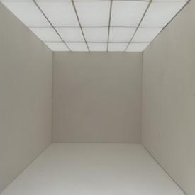 Physical model image of the main exhibition space, natural light enter through the light well, bouncing on the reflection board and roof, and then becomes diffused light