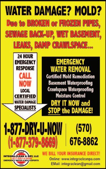 Trust Cooper's for your seafood! Find the freshest fare! Fish • dry scallops • clams • oysters • lobster tails • king crab snow crab • shrimp & our famous soups: Crab and Lobster Bisque, Manhattan and New England Clam Chowder • LOUISIANA ALLIGATOR STEW AND OYSTER STEW Also ready- to-eat meals. Just purchase and heat! Spend $30 or more and get a free pint of Maryland Crab Bisque!! Dec. 23 9 a.m. 5 p.m. • Dec. 24 8 a.m. 4 p.m • Dec. 30 9 a.m. 5 p.m. • Dec. 31 8 a.m. 4 p.m. www.coopers-seafood.com • 701 N. Washington Ave., Scranton (570) 346-6883 ddddddddddddddddddddddddddddddddddddd ddddddddddddddddddddddddddddddddddddd
