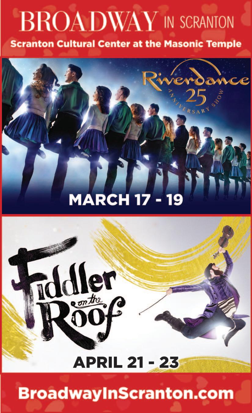 On the Cover: The rhythm is sure to get you, as Riverdance comes to the Scranton Cultural Center at the Masonic Temple! Photo credit: Jack Hartin © Abhann Productions