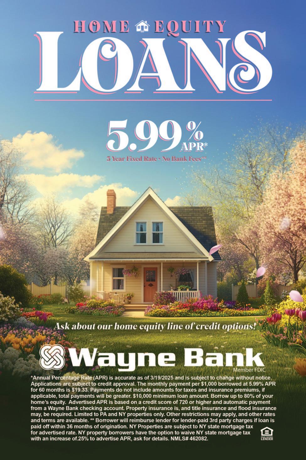 Wayne Bank is an Equal Housing Lender. Loans are subject to Wayne Bank’s credit policy. Restrictions may apply. NMLS #462082. Wayne Bank is a subsidiary of Norwood Financial Corp., Member FDIC and is located in Honesdale, Pennsylvania. The Bank has 30 Community Offices serving Wayne, Pike, Monroe, Lackawanna and Luzerne Counties in Pennsylvania, along with Delaware, Sullivan, Otsego, Ontario and Yates Counties in New York, including those offices operating under the Bank of Cooperstown and Bank of the Finger Lakes brands. The stock trades on the NASDAQ Global Market under the symbol—NWFL.H