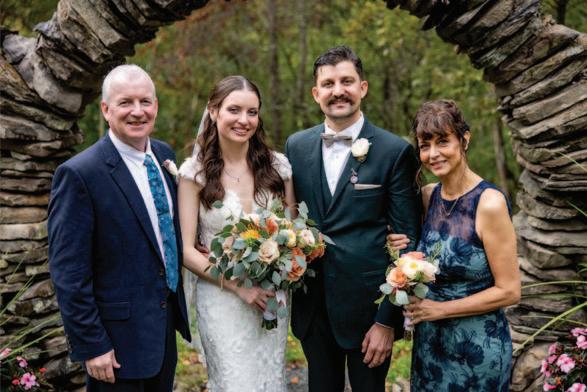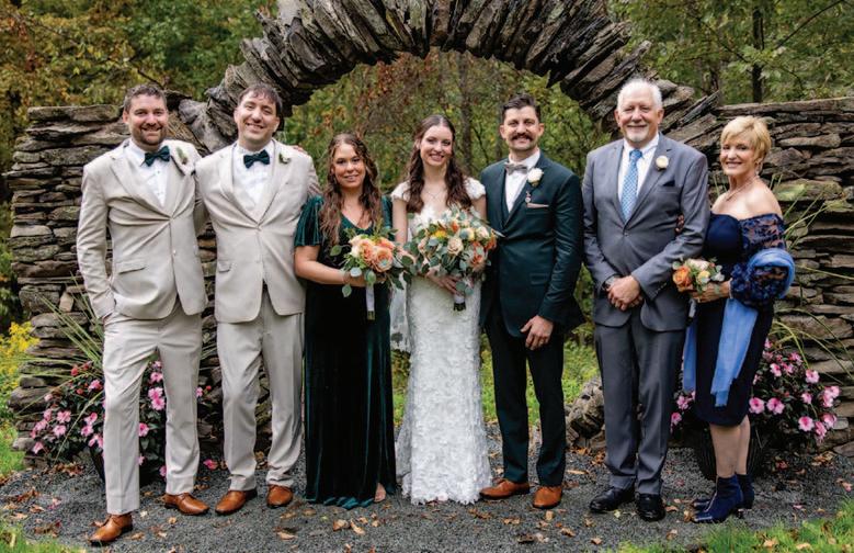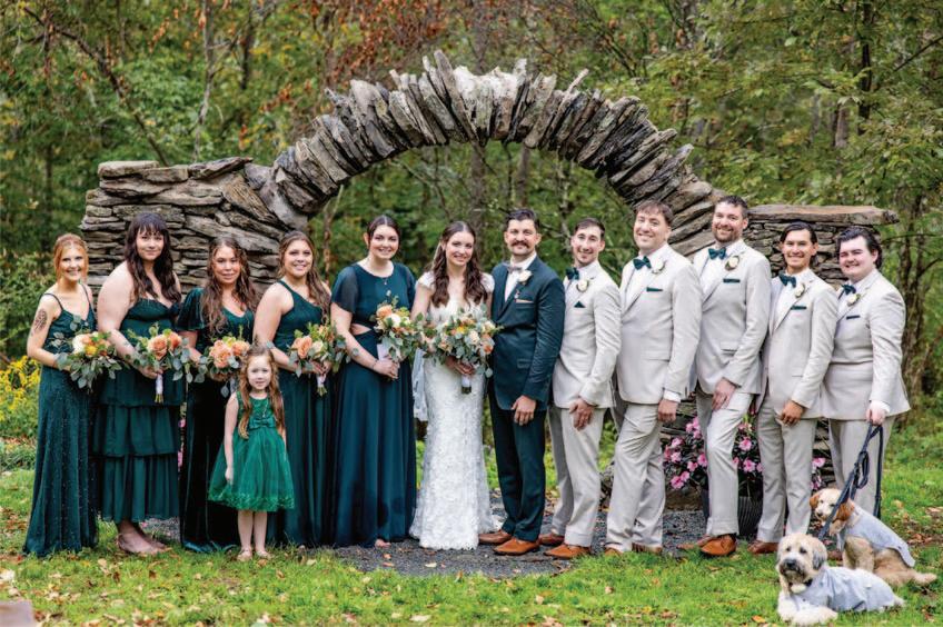 The couple exchanged vows on September 28, 2024, on a 14-acre property in South Abington Township, owned by Jesse’s father. Because Jesse’s late mother would not be present at the wedding, the couple had a strong desire to hold the celebration on a property that had meant so much to her. Jesse worked tirelessly for months to prepare the property for the wedding, building a moon gate by hand, using rocks found entirely on the property. He also built the benches for the ceremony using trees from the property. Many family members assisted in helping with the wedding, and for this, the couple remains truly grateful. Creating the perfect venue was truly a labor of love from all involved.