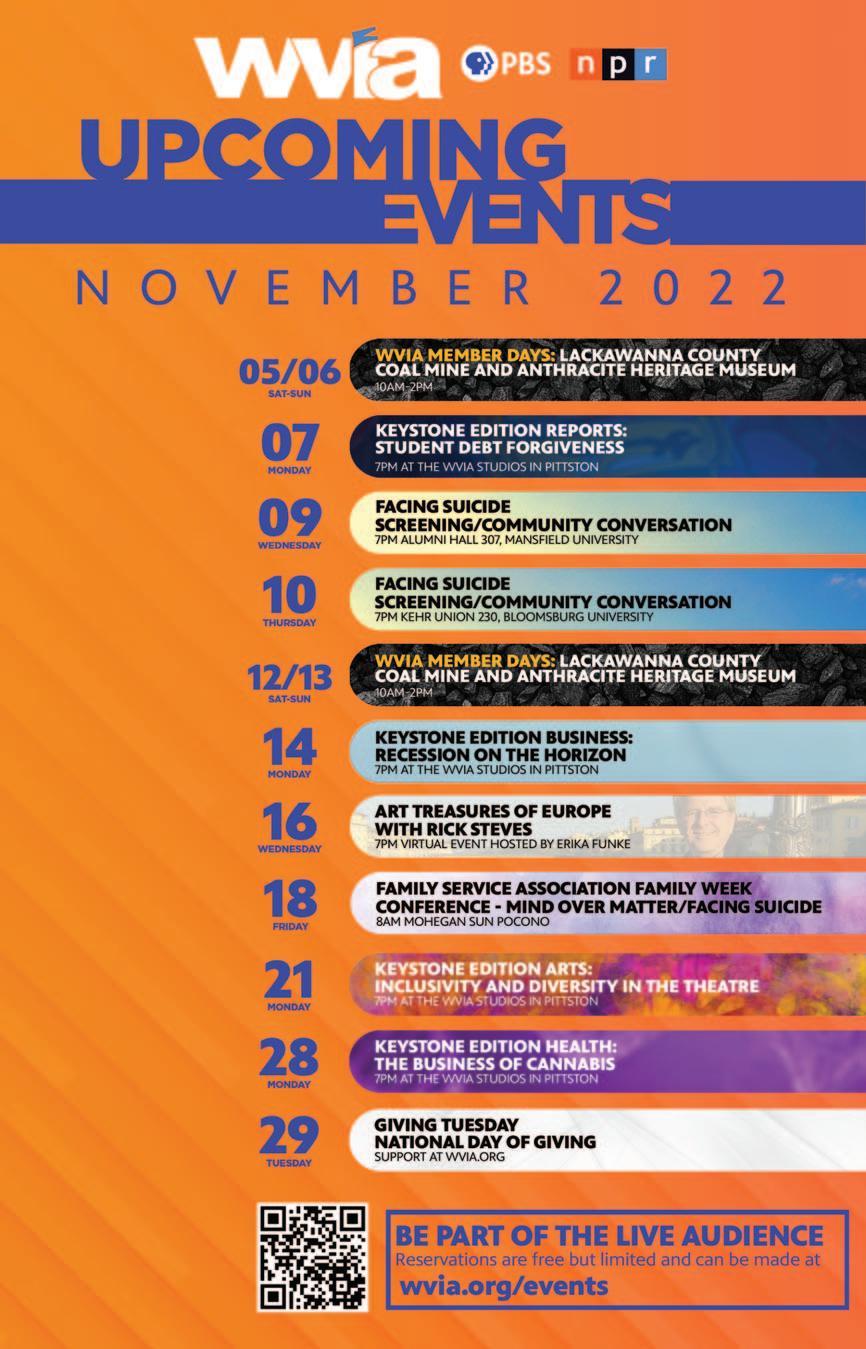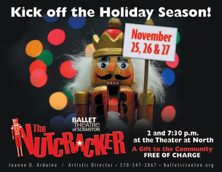 10th Annual Buy Local Holiday Marketplace, Scranton Cultural Center 22 24 12 21 The Nutcracker, Ballet Theatre of Scranton, 11/25-27 A Christmas Carol, Shawnee Playhouse Thanksgiving Day 15 Peace Love and Lights, Holiday Light show at Bethel Woods Beginning 11/25 2520 27 11 18 23 14 30 Arts At Hayfield, Homespun Holiday, Penn State, Wilkes Barre The D&L Heritage Half Marathon Run or Walk Misericordia University Open House Christmas In Our Hometown, Tunkhannock 29 8 Lackawanna Pro Bono Gala, Scranton Cultural Center Keynote Lecture Featuring Curtis Zunigha, University Of Scranton 6 28 7 10 17 St. Joseph's Center Online Auction Nov. 1-19 NEPA Philharmonic, Masterworks Katya Moeller Leadership Lackawanna Howl At The Moon Dueling Pianos Breaker Brewing Outpost, Archbald 13 16 19 november 26 9 sunday monday tuesday wednesday thursday friday saturday 1887 Artist Georgia O’Keefe was born in Wisconsin 1963 President John F. Kennedy is assassinated in Dallas, Texas Military Family Month National Home Care and Hospice Month National Family Literacy Month National Gratitude Month National Sweet Potato Month Elizabeth