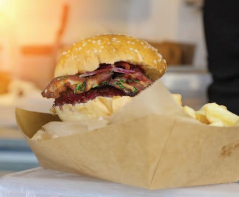 Our Stirnaburger is full 1/4 lb. top choice ground beef with tomato, bacon and American or Swiss on a semi-hard roll.