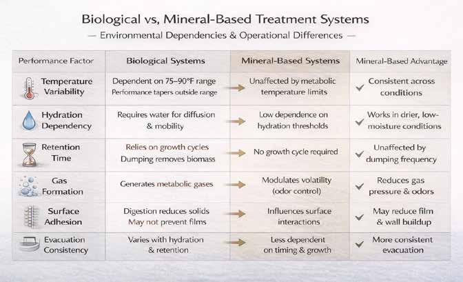This executive technical brief introduces a mechanism-based framework for understanding how different RV holding tank treatment systems behave in mobile wastewater environments.