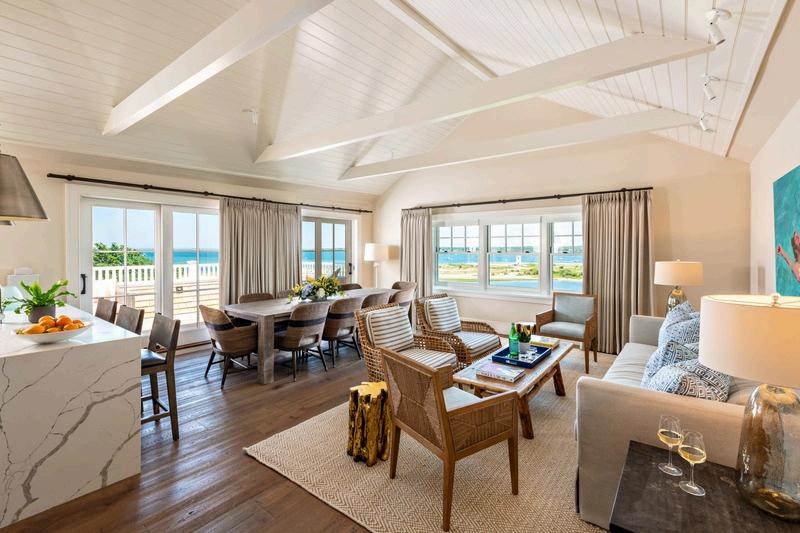 Perched atop the historic building at Harbor View Hotel, the Skyhouse offers a truly unique setting that transitions seamlessly from an inspired daytime meeting space to luxurious evening accommodations. Ideal for intimate business retreats or private gatherings, the residence features a spacious living area, full kitchen, and an expansive balcony—one of the finest on Martha's Vineyard—with sweeping views over Edgartown. Designed for small, discerning groups, the Skyhouse blends privacy and sophistication.