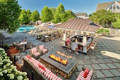 Host a relaxed yet refined outdoor corporate gathering at the Roxy Pool Bar at Harbor View Hotel. Surrounded by lush gardens, private cabanas, and the sparkling pool, this inviting setting features a lively pool bar for craft cocktails and a true taste of Martha's Vineyard. As the sun sets, fire pits and coastal breezes create the perfect atmosphere for connection, conversation, and memorable moments.