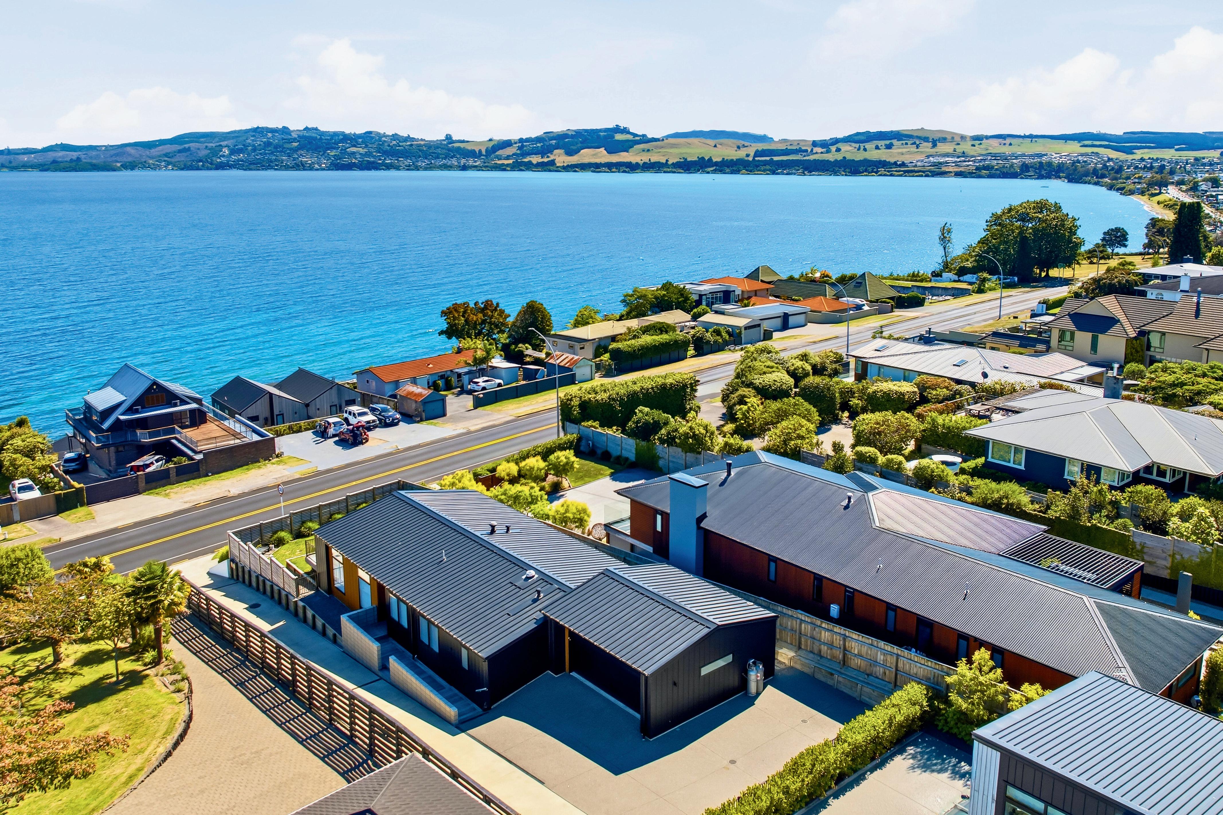 Tucked into one of TaupōAs most soughtMafter lakeside neighbourhoods, this nearMnew home in Old Wharewaka offers a rare combination of modern design, considered living, and effortless lifestyle in one complete package. Located within the popular Waipahihi School zone, itAs well positioned for families seeking both everyday practicality and weekend escape potential. Spanning 175 sqm Vmore or lessW across two levels, the home balances social spaces with private retreats. OpenMplan kitchen, dining, and living are drenched in natural light, framed by elevated lake views that invite you to linger over coffee or entertain with ease. Large windows and flowing lines create a sense of space and connection M creating the backdrop for entertaining. Downstairs, three generous bedrooms and two contemporary bathrooms provide comfort, flexibility, and privacy for family, guests, or holiday use. Outside, the 571 sqm Vmore or lessW freehold section is easy to maintain yet functional, with room for children, pets, and summer entertaining.