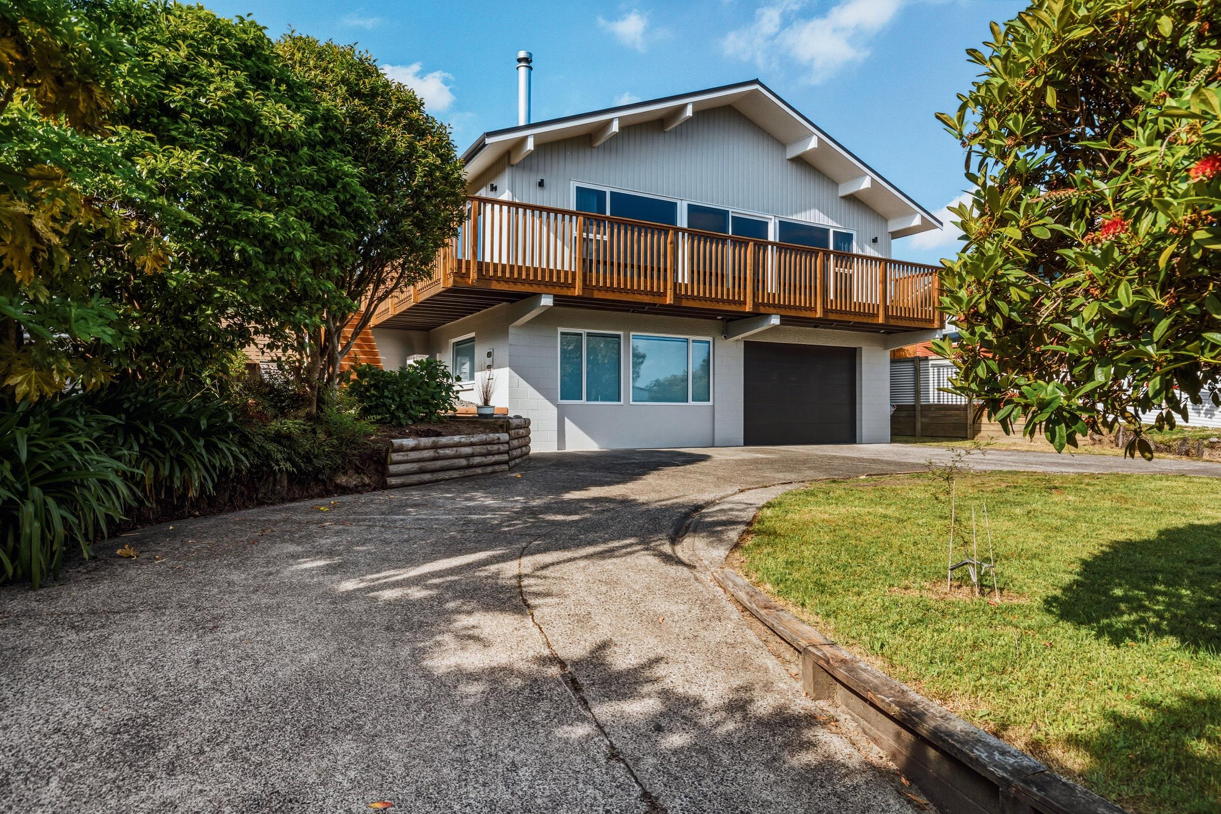 Secure your place in Taupō’s top school zone for 2026 with this modernised Hilltop family home. Elevated on a freehold 890sqm (more or less) section with lake and mountain views, it offers five bedrooms and three bathrooms, including a master with walk-in-robe, ensuite, and outdoor access. The lower level includes a bedroom, office, and new bathroom ideal for working from home or guest/Airbnb.