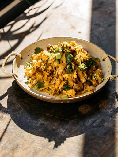 2 Put the chicken and the ingredients for the spice blend in a bowl and mix until well coated. once the oil is hot, add the chicken to the pan and fry for 2 minutes before adding in the red pepper.
