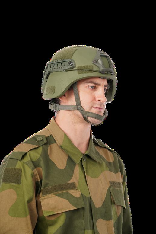 4-point chin strap harness with integrated nape pad for secure fit. Excellent mechanical rigidity, impact protection, and heat insulation. Resistant to extreme temperatures, water, moisture, and flame Fully compatible with add-on devices including NVG, CBRN, and communication systems.