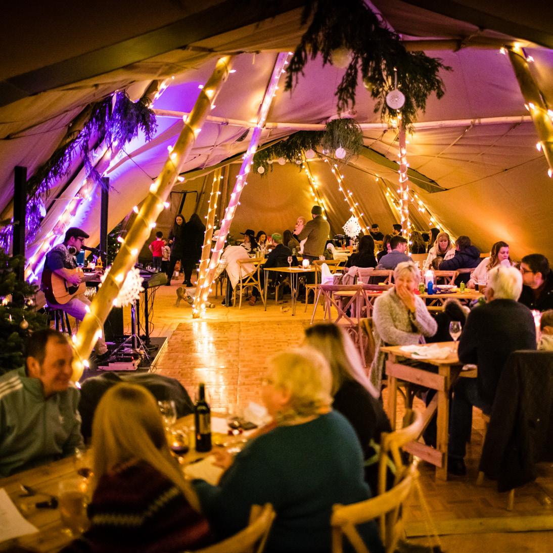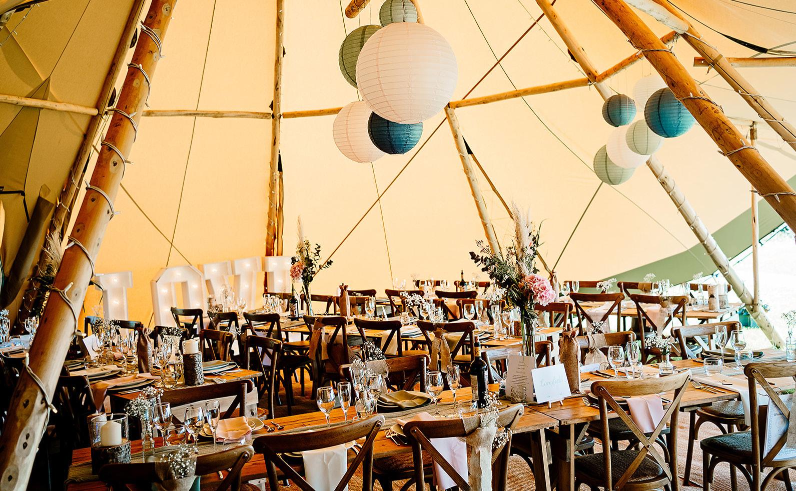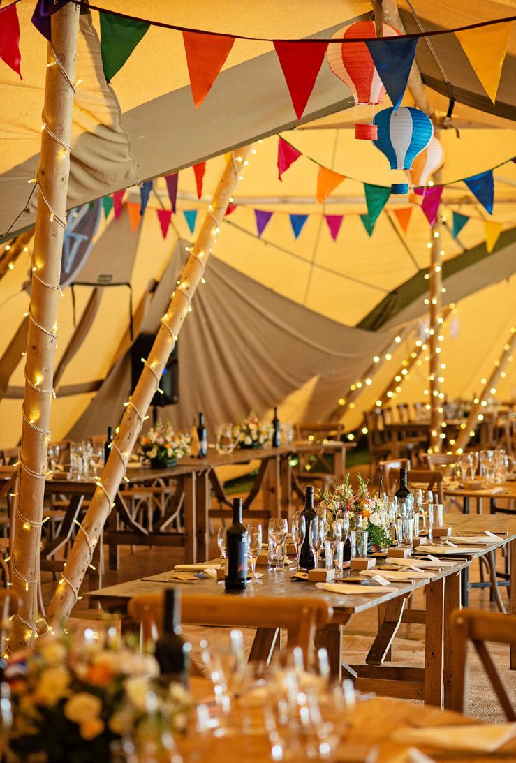 We have Giant Tipis, which can seat from 50 to... well... you name the number! They come with beautiful flooring & fairy lights throughout to create the most magical setting and backdrop to your day.