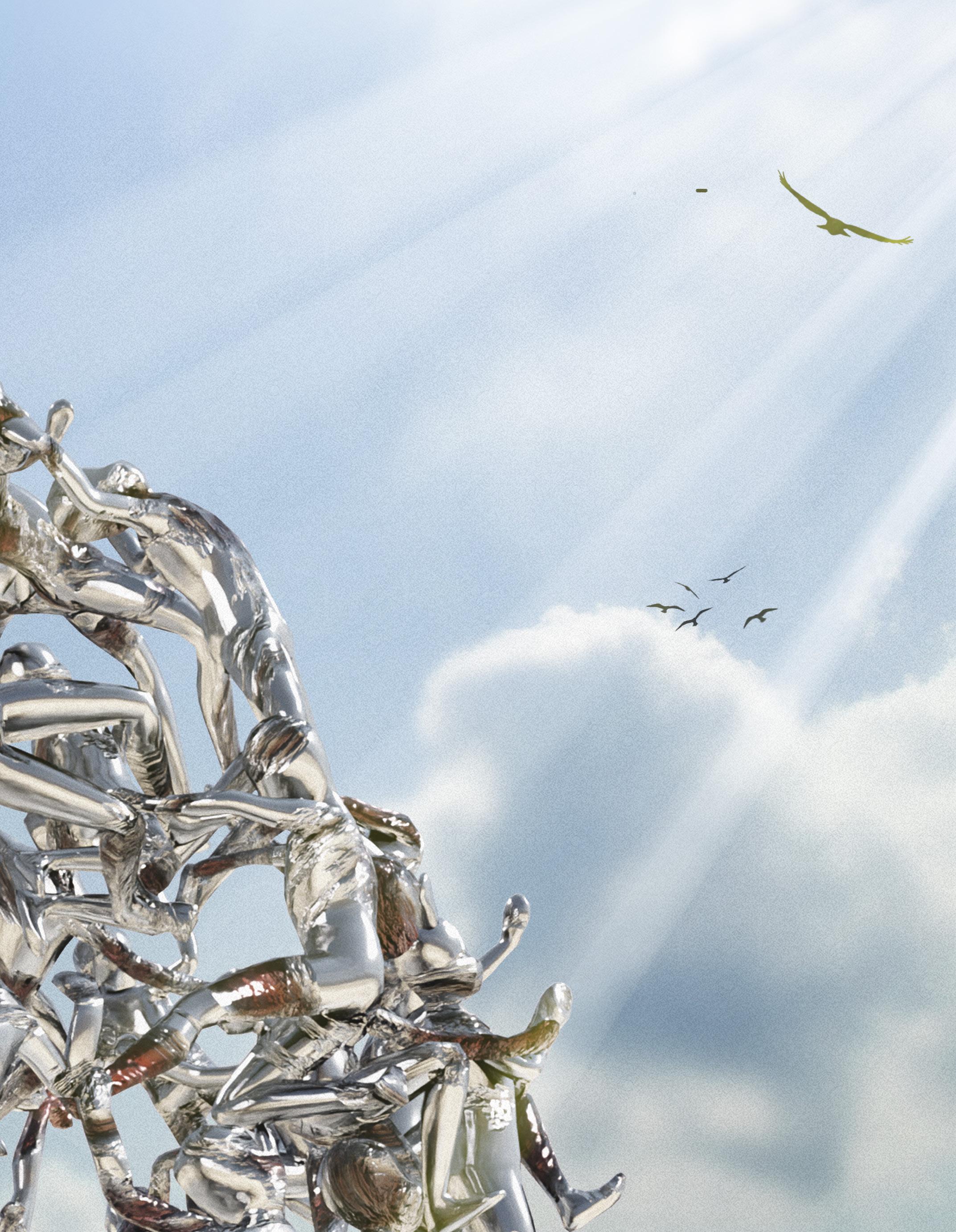 The main aim is to resuscitate the feeling of internment trying to rescue from drowning in the blanket of death. Thus the sculptures connected to one another bulge out of the spherical vacuum. Moreover, the gunmen are holding up the entire mass as they possess the entire control and fate of the sufferers. The overall globular structure with individuals holding to one another conveys a sense of unity and harmony.