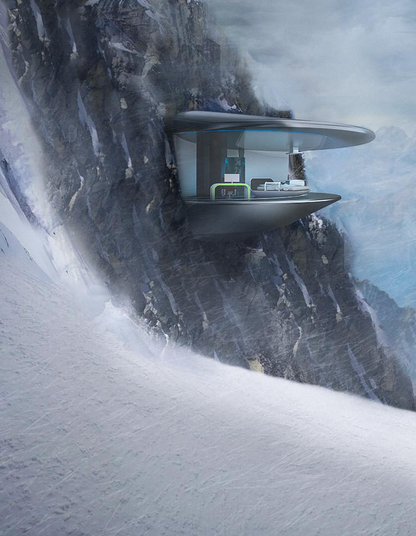 Concept : A pod extruding out from the cliff, partially carved in the mountain.