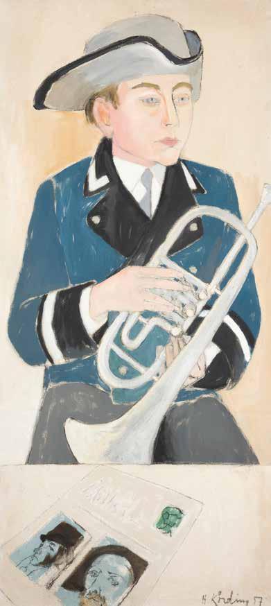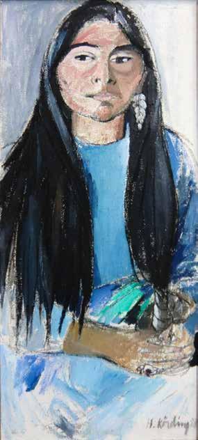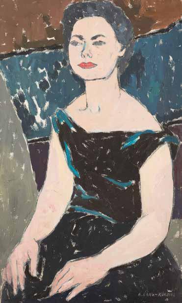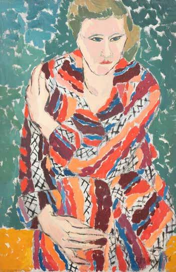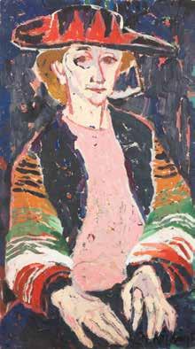 In der umfassenden Werkgruppe der Portraits gelingt es Herma Körding die Persönlichkeit ihres Gegenübers pointiert einzufangen, mal leise mit einer zurückhaltenden Farbpalette, mal lauter mit farbintensiven Akzenten. Zum Teil in expressionistischfarbintensiver Manier ausgeführt, teils flächig, spiegeln die Portraitierten den von Körding eingefangenen Zeitgeist wider. So zeigt das ‚Mädchen im schwarzen Kleid‘ (Abb. 42) eine junge Frau in einem klassischen schwarzen Abendkleid, wie es typisch für die späten 1950er und frühen 1960er Jahre war. Die Portraits ‚Ute, die HandballSpielerin‘ von 1973 (Abb. 48) und ‚Frau im Sommerkleid‘ von 1970 (Abb. 49) lassen mit der Natürlichkeit und der farbenfrohen Darstellung des floralen Kleides den Charme der 1970er Jahre sichtbar aufblühen.