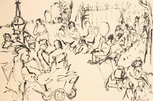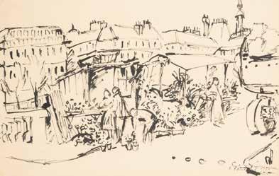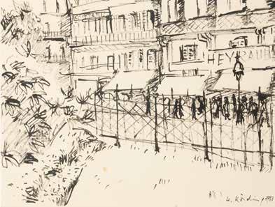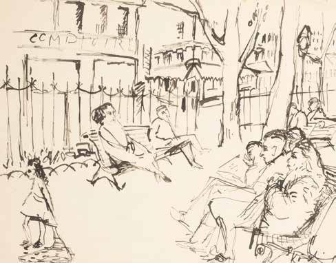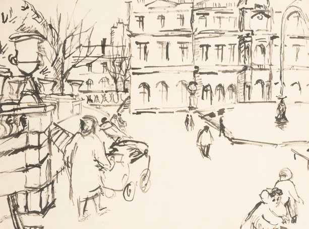 In Paris angekommen, fängt Körding das urbane Leben der pulsierenden Metropole in zahlreichen spontanen Rohrfeder-Tuschzeichnungen in ihrem Skizzenblock ein. Die Ansichten des Jardin du Luxembourg, Straßen- und Café-Szenen, dem schweifenden Blick entlang der Seine folgend oder direkt in die Klasse von Professor Dupas an der École Nationale Supérieure des Beaux-Arts – in ihren frühen Zeichnungen zeigt sich bereits Kördings feines Gespür, den erlebten, vergänglichen Augenblick bildnerisch mit schnellen, aber gezielten Strichen festzuhalten und die Betrachtenden gekonnt in die Szenerie hineinzuziehen.