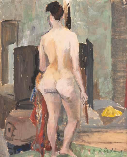Entgegen der sich zeitgleich in den 1950er Jahren formierenden Strömung des abstrakten Expressionismus und der Art Informel, bleibt Herma Körding stets dem Gegenständlichen in ihren Werken verbunden. Der akademisch geprägte Blick zeigt sich zudem in den Aktstudien, die Körding auch in den Folgejahren nach ihrem bis 1952 fortgesetzten Studium in Karlsruhe und den anschließenden Studienjahren von 1953 bis 1956 an der Kunstakademie in Düsseldorf weiterverfolgt.